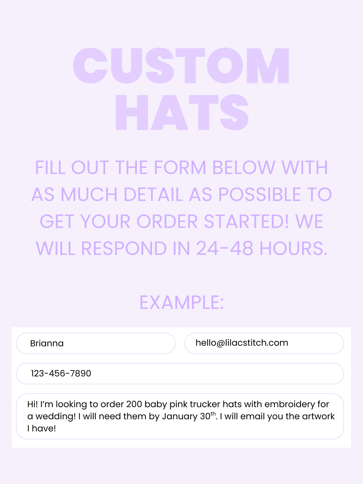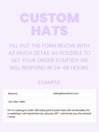Please fill out the form below for all custom order inquiries! Please include: